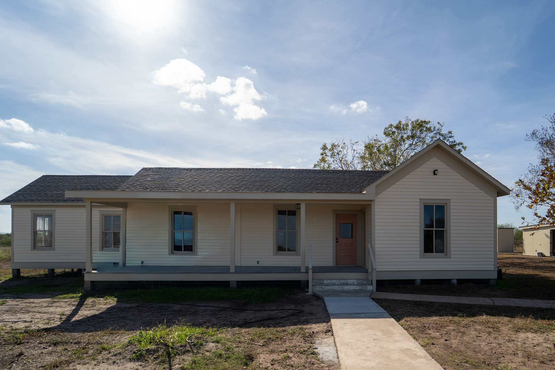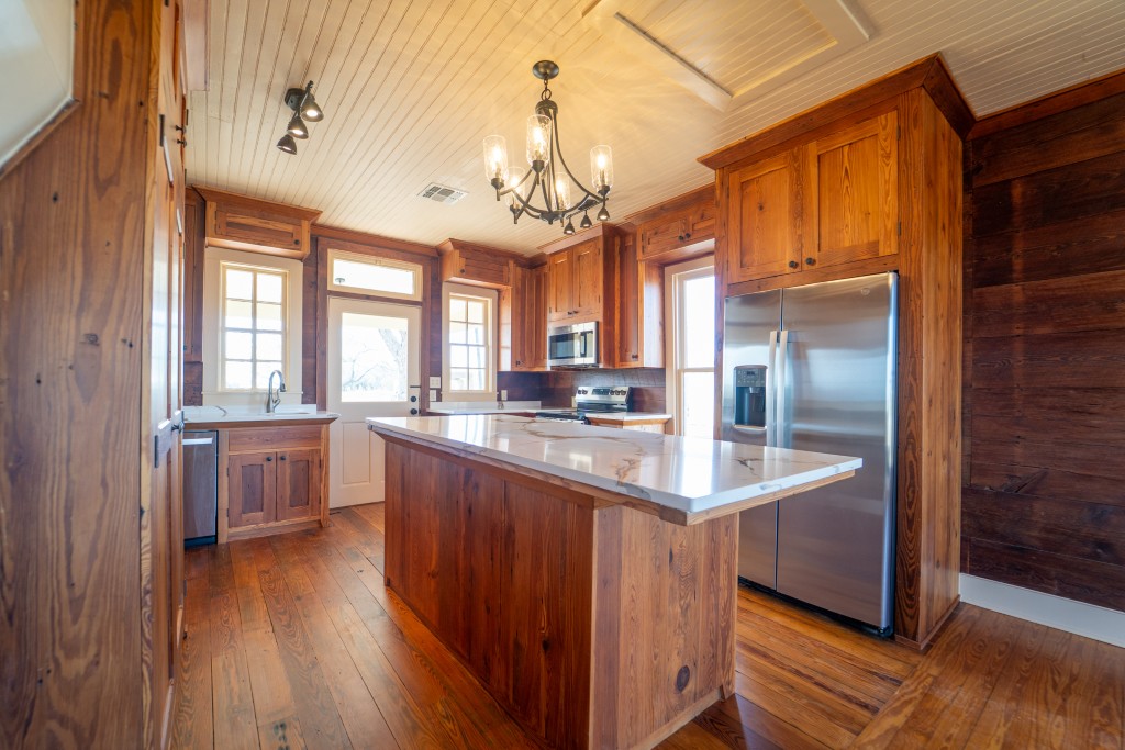 This beautifully restored historic farmhouse blends vintage charm with modern comfort. The exterior welcomes you with classic farmhouse lines and a wide front porch. Set on 1.2 acres, this restored farmhouse offers the perfect balance of country charm and modern living—a timeless home ready for its next chapter. Inside, light-filled rooms showcase original-style details paired with quality upgrades. Longleaf pine wood floors, shiplap walls, beadboard ceilings, and tall windows create a bright, inviting atmosphere throughout. The spacious living areas flow easily from room to room, offering both comfort and functionality. This home boasts 3 bedrooms generously sized, offering peaceful retreats, and the 3 1/2 updated bathrooms blend classic design with contemporary finishes offering the convenience of each bedroom connected to a bath. Thoughtfully renovated, the home retains its original character while offering updated finishes and livable spaces designed for today’s lifestyle. The kitchen serves as the heart of the home, featuring custom built mesquite wood cabinetry, a central island, and period-inspired lighting that complements the farmhouse aesthetic while providing the convenience of modern appliances: refrigerator, stove, dishwasher, and microwave. Stackable washer & dryer included as well. Home leases for $3,500 per month. Security deposit $3,500. No pets/no smoking. Additional land may be available for lease for an additional amount. Price on additional land lease depends on amount of land and use of land. Call Woolson Real Estate, Inc. for additional information or to schedule a showing. (361) 578-3623.